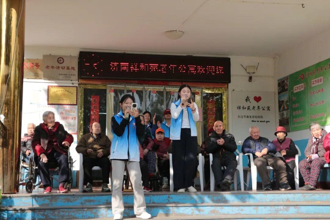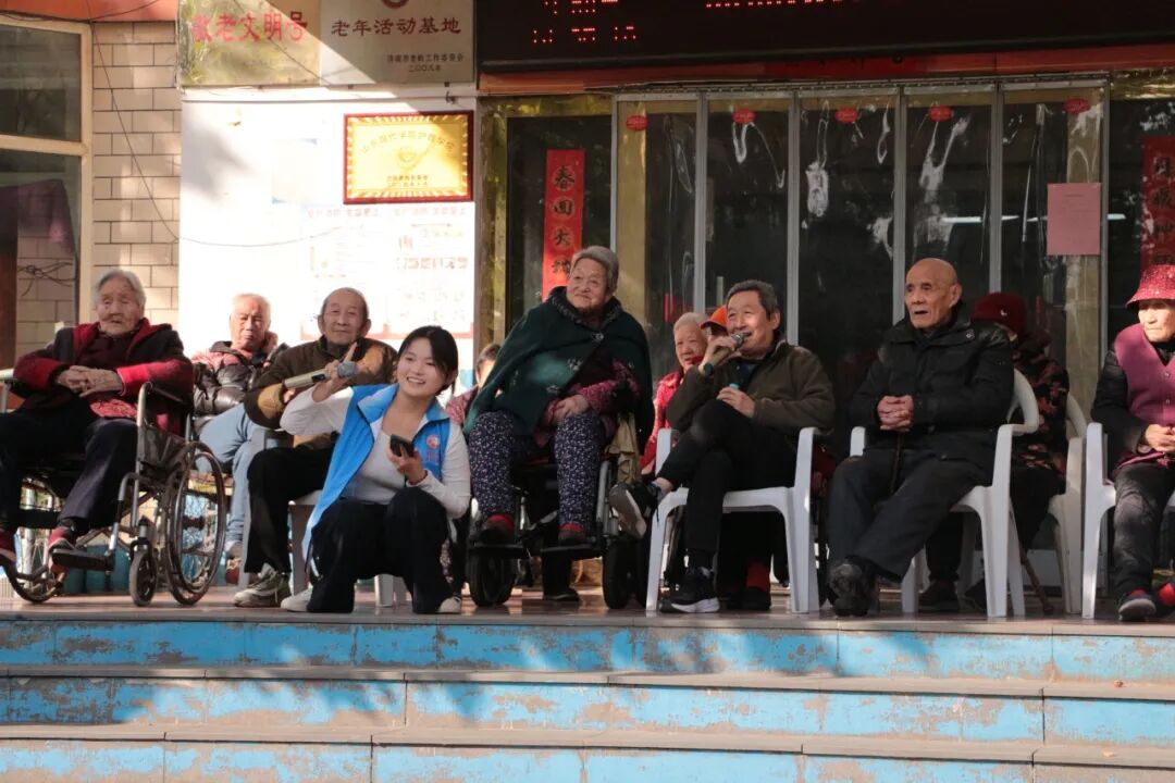 下午两点,文艺表演正式拉开帷幕。主持人向老人与志愿者致欢迎词,首先表演的是八段锦,志愿者登场表演并带领老人体验八段锦,八段锦贴合老人养生需求;紧接着的广场舞表演,鼓励老人跟随节拍晃动身体通过动态舞蹈传递活力,增强老人互动,活跃了现场气氛;最后一首歌曲《有我》,用音乐传递情感,深化了活动的温暖内核,引发老人情感共鸣,也诠释了志愿者们强国有我的坚定理想信念;结尾环节,主持人总结活动,代表老人向志愿者致谢,并送上对老人的健康祝福。