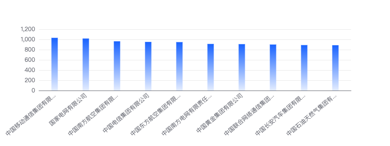 位居排行榜前十的分别是中国移动通信集团有限公司、国家电网有限公司、中国南方航空集团有限公司、中国电信集团有限公司、中国东方航空集团有限公司、中国南方电网有限责任公司、中国黄金集团有限公司、中国联合网络通信集团有限公司、中国长安汽车集团有限公司、中国石油天然气集团有限公司,其中排名上涨最多的是中国南方电网有限责任公司,提升5名。上个月排名前十的品牌本月下降最多的是鞍钢集团有限公司,下降25名。