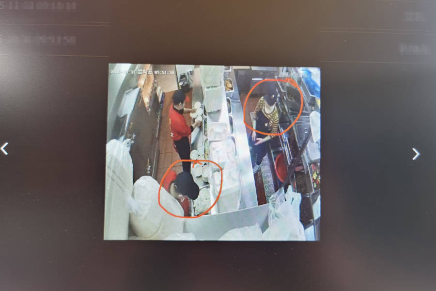进博会期间的用餐高峰日,当天供餐量可达2万多份,“互联网+明厨亮灶”是护航食品安全的有效手段。图为图像识别技术抓拍到的某餐饮单位员工未戴口罩。 陈玺撼摄