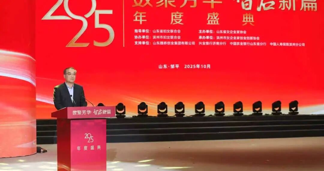 金秋十月,黛溪湖波光粼粼,垂柳摇曳如诗。恰逢全球妇女峰会圆满举办、党的二十届四中全会胜利召开之际,10月24日,在山东省妇联指导下,以“数聚芳华 智启新篇”为主题的山东省女企业家协会2025年度盛典在滨州举行。山东省妇联党组书记、主席孙丰华出席并讲话;山东省滨州市委书记宋永祥出席;山东省滨州市人大常委会主任、党组书记马俊昀,山东省妇联党组成员、副主席王洪霞,山东省滨州市委常委、秘书长丁锋,山东省女企业家协会常务副会长、山东佳怡供应链管理有限公司董事长孙倩参加;山东省滨州市政府党组成员、副市长吕明涛,山东省女企业家协会副会长、山东魏桥创业集团有限公司党委书记、总经理张红霞致辞。来自全省各地的优秀女企业家代表,共赴这场融合思想碰撞、智享赋能、资源对接、表扬激励、风采展演、品牌展示与活力运动的“巾帼之约”,为“十四五”收官与“十五五”谋篇注入澎湃“她力量”。