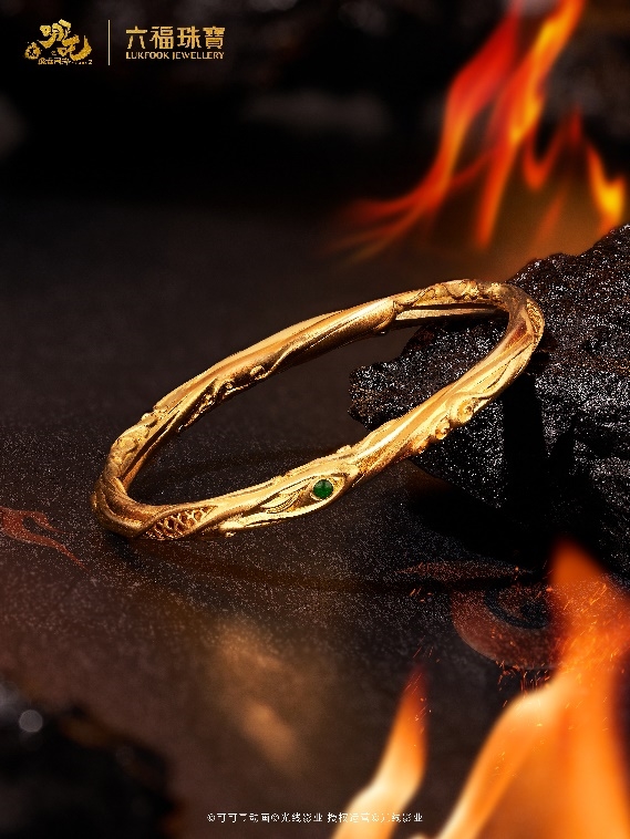 继2020年国民珠宝品牌六福珠宝与现象级影视IP电影「哪吒之魔童降世」成功合作,时隔五年两者再度携手,重磅推出火爆全球的国漫电影「哪吒之魔童闹海」系列产品,续写“金”彩华章。此次再度与国民IP「哪吒」的强强联合,不仅是六福珠宝深耕中国传统文化和品牌年轻化的又一次重磅出击,也是情感价值与精神内核的契合与创新,为珠宝设计提供无限灵感。电影「哪吒之魔童闹海」系列延续影片中的经典元素,将具代表性的乾坤圈、风火轮、混元珠等,采用传统古法制金工艺与硬足金鎏彩技术,匠心打造成多款璀璨生辉、福寓满满的足金首饰,“破次元”的巧妙融合,为矜贵的金饰情感赋能,惟愿每一位佩戴者都有重塑自我、直面挑战的勇气和力量,成为更好的自己。