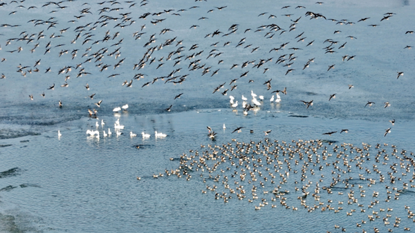 The Yellow River Delta in Dongying, Shandong, turns into a paradise of birds in autumn. [Photo/WeChat account: sdswltwx]