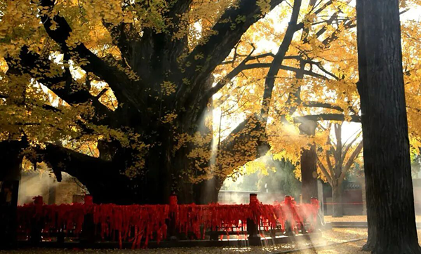 In Rizhao's Fulai Mountain scenic area, a 4,000-year-old ginkgo tree stands tall as sunlight filters through the gaps between its branches and golden leaves. With a height of 26.7 meters and a trunk circumference of 15.7 meters, it offers nearly 900 square meters of shade, a testament to the passage of time.