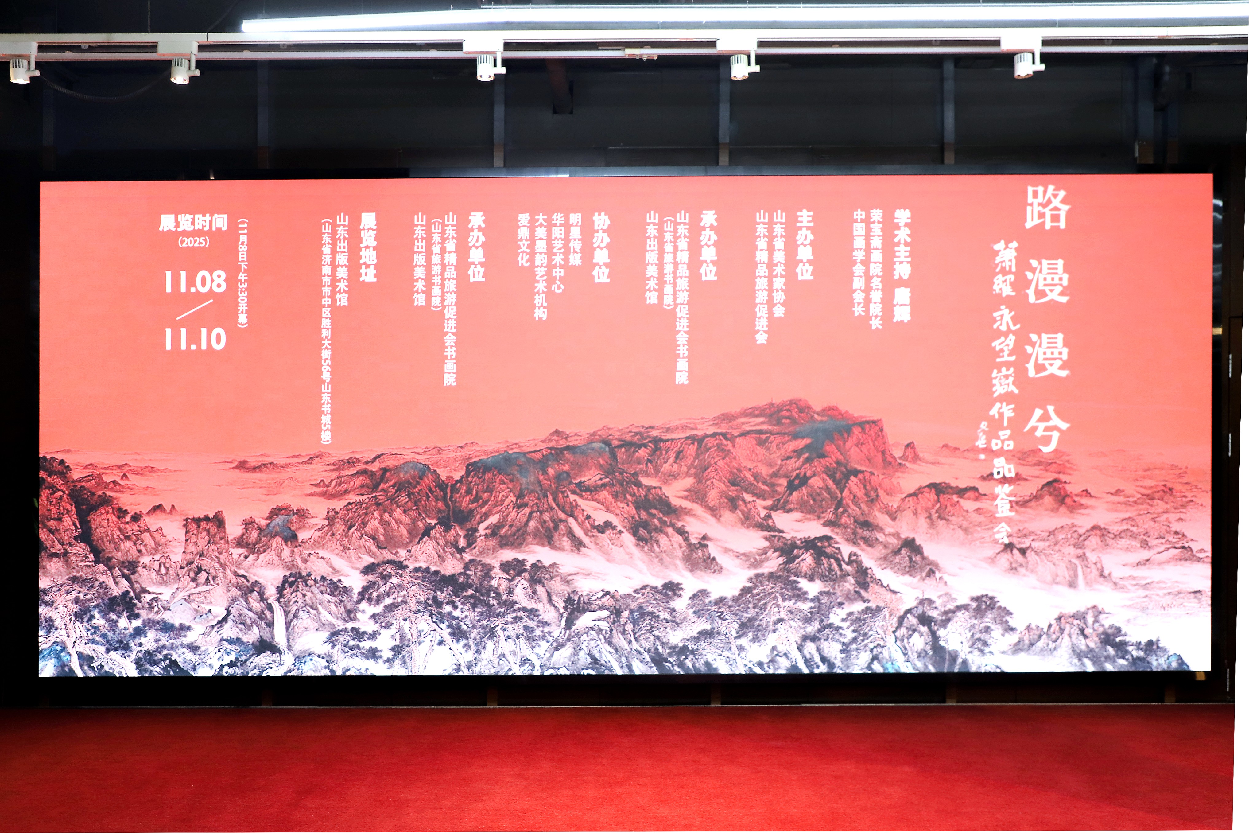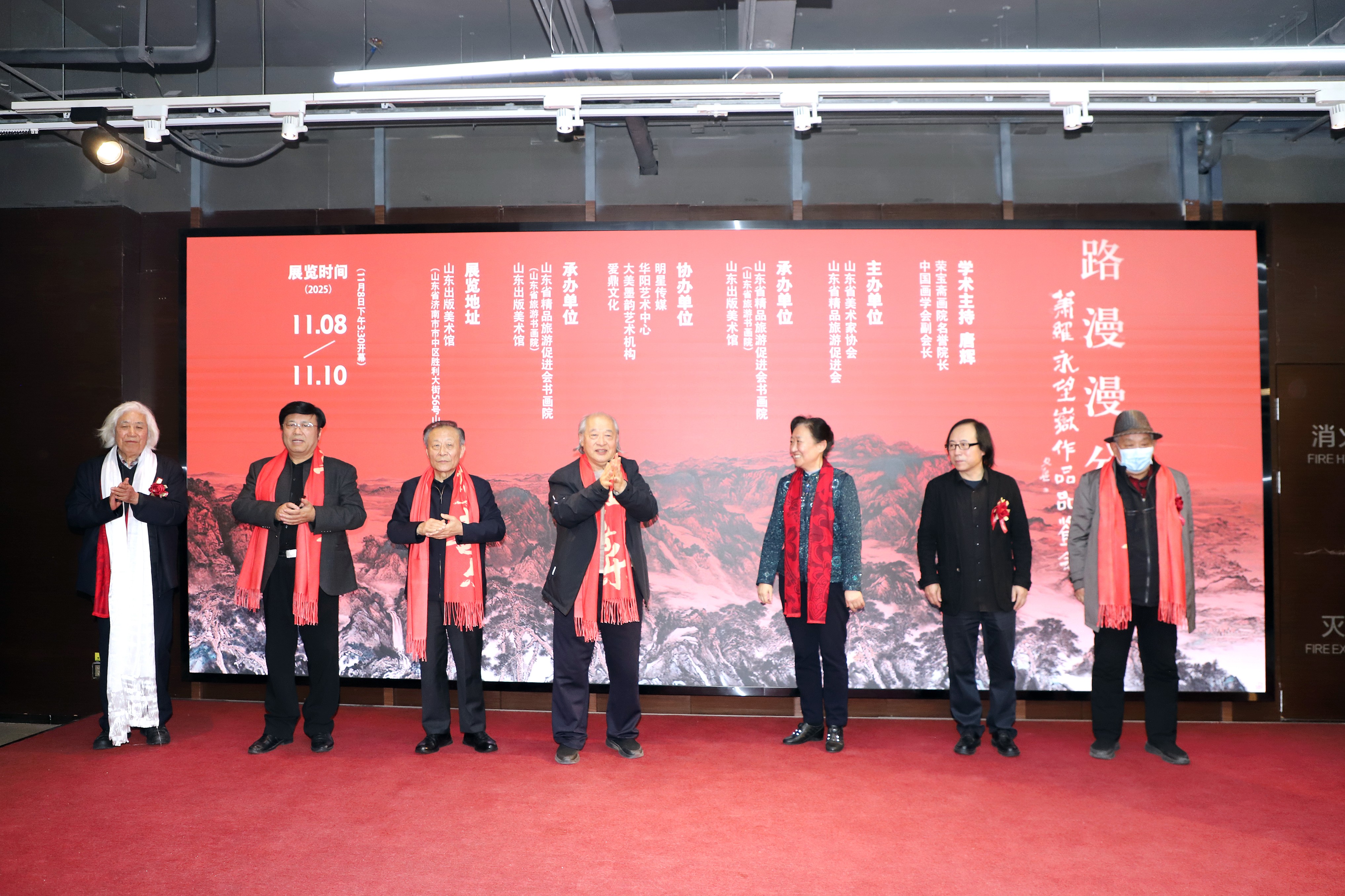 11月8日下午,“路漫漫兮——萧维永望岳作品品鉴会”在山东出版美术馆开幕。本次展览集中呈现了萧维永近年来以山水为主题创作的水墨作品六十余幅,较为全面地展现了艺术家在传统山水画领域的探索与实践。展览吸引了数百名艺术界专业人士、书画收藏家及爱好者到场。