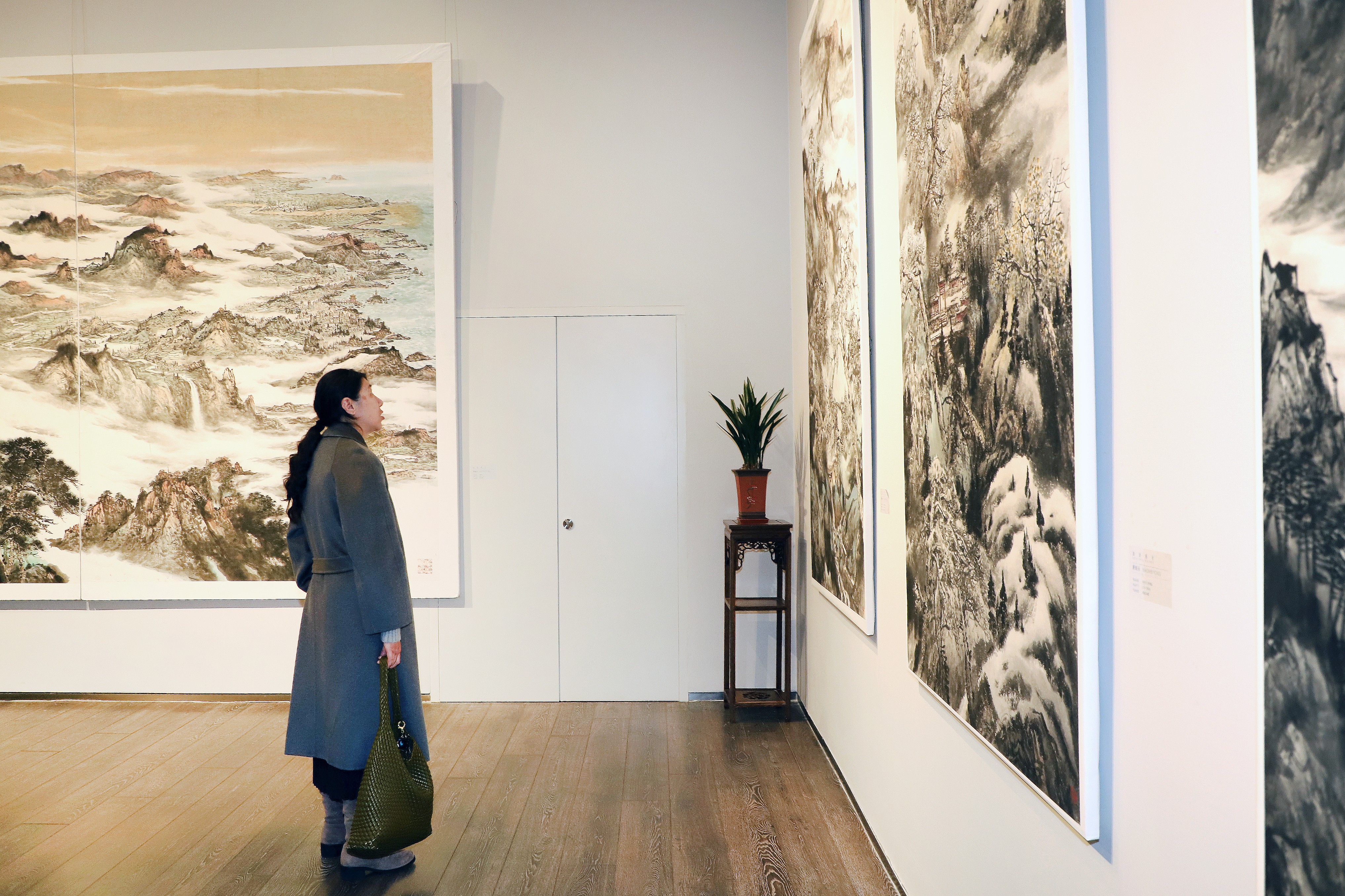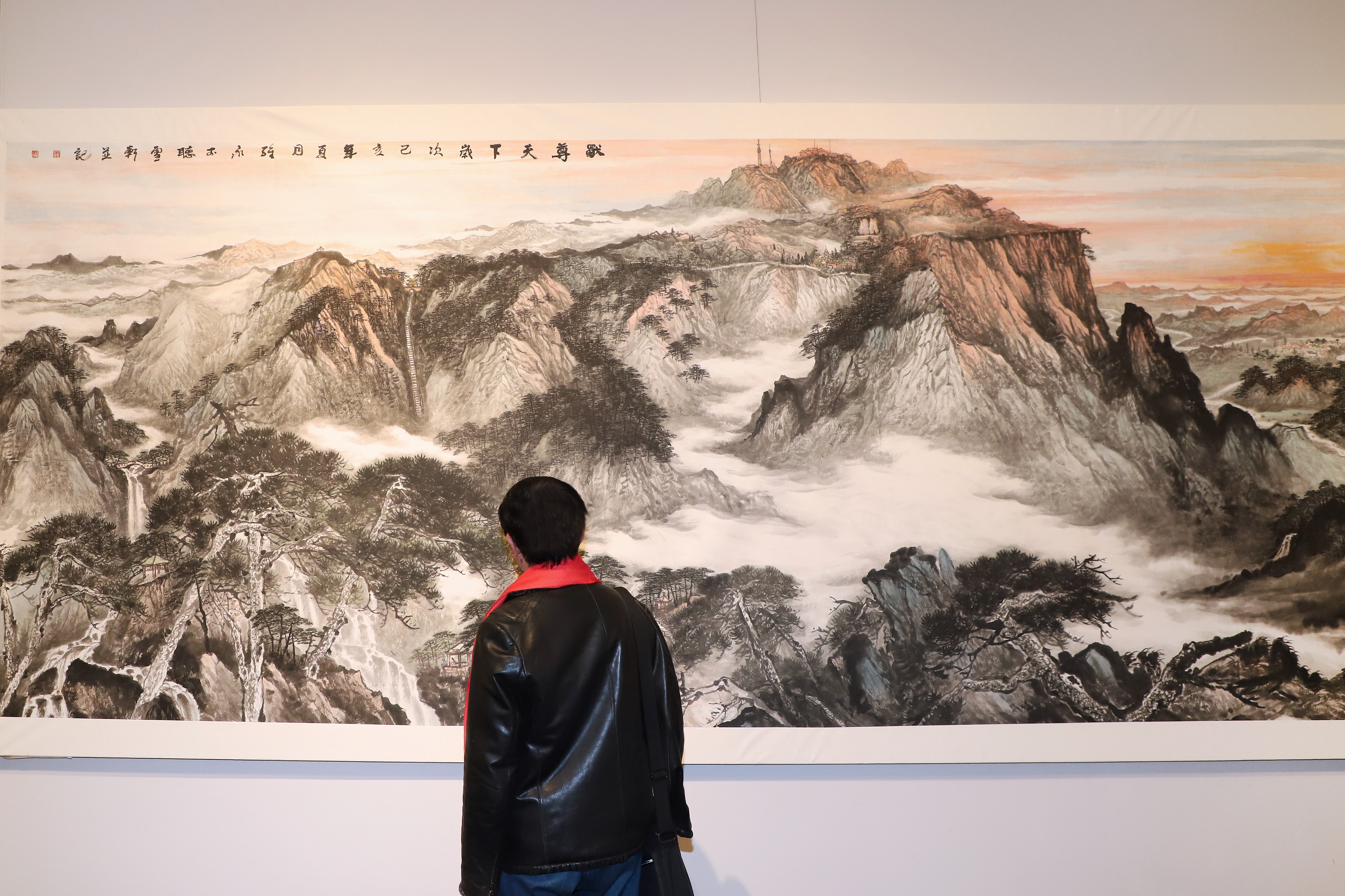 其中巨制《望岳》更是凝聚了他对大自然的敬畏与艺术语言的探索。作品在继承传统山水画精神的基础上,融入了个人对自然山水的观察与感悟,展现了中国山水画在当代的传承路径。