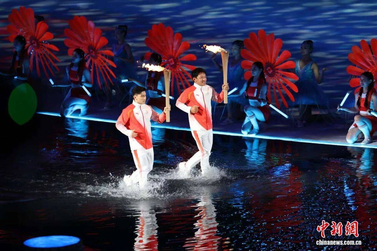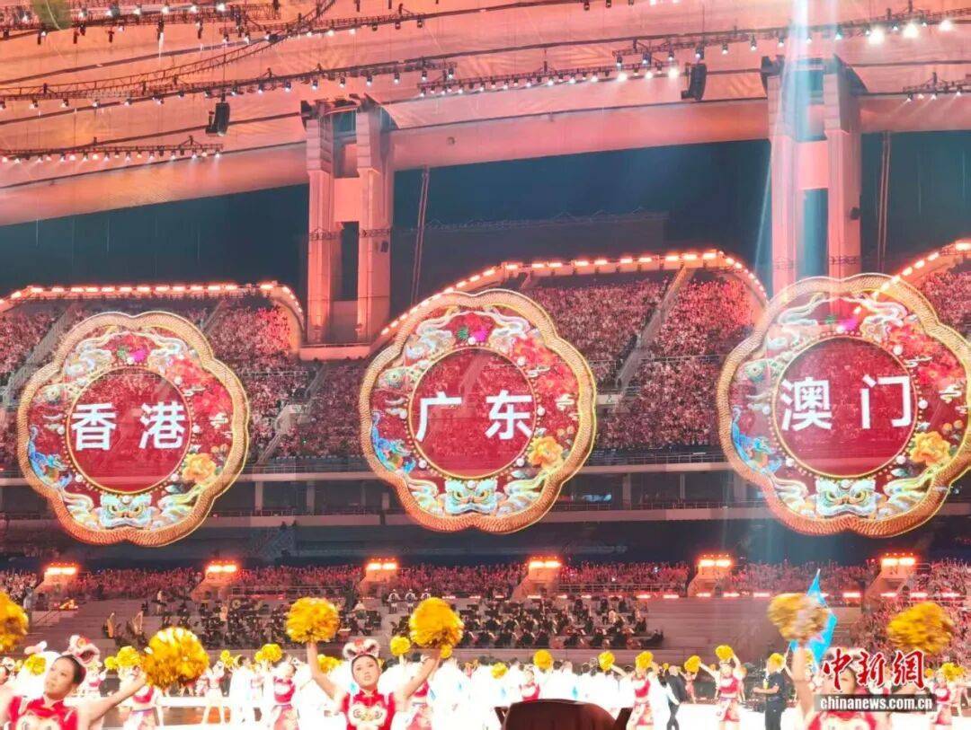 图为东道主广东、香港、澳门体育代表团同时入场。中新社记者 陈楚红 摄