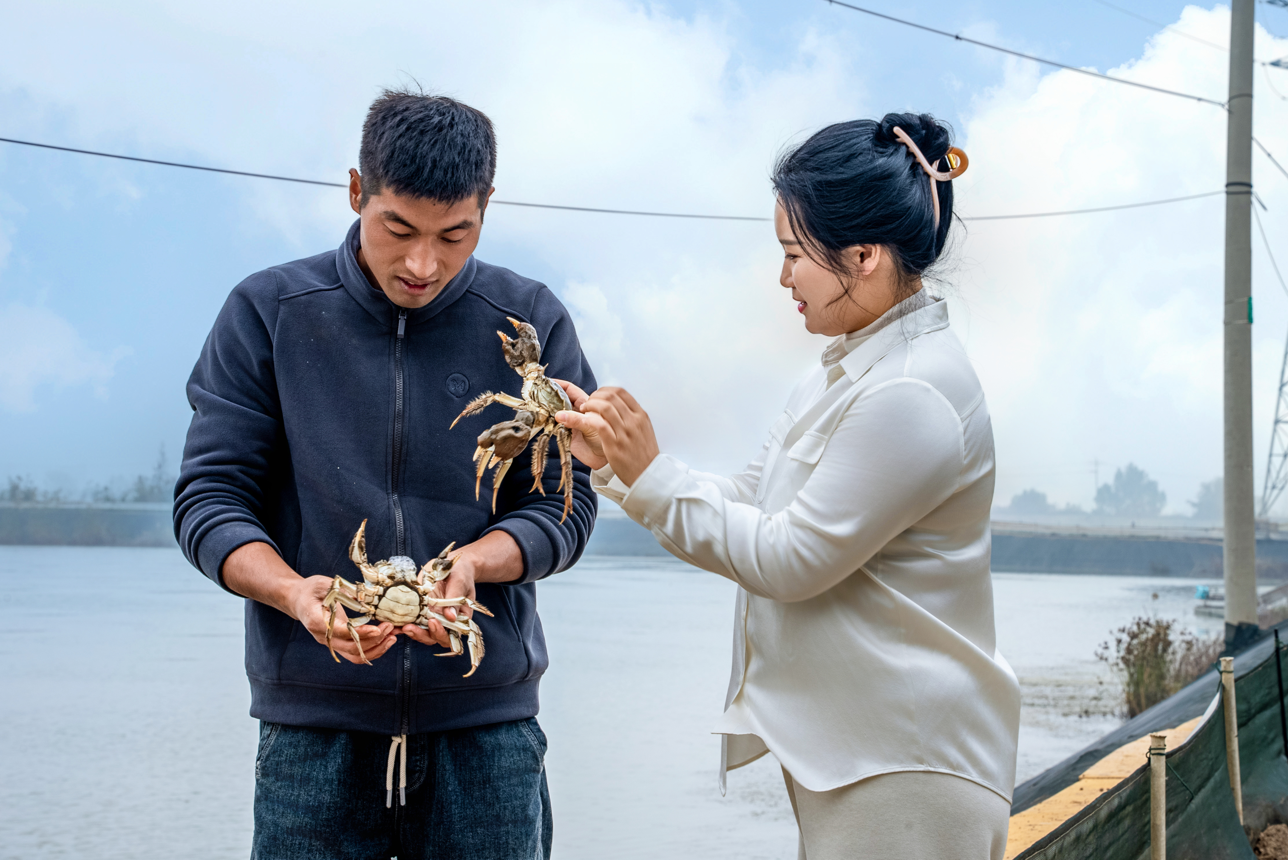 一个守塘,一个跑市,这对“湖蟹侠侣”正用各自的方式,让家乡的蟹,从湖水里游向世界。