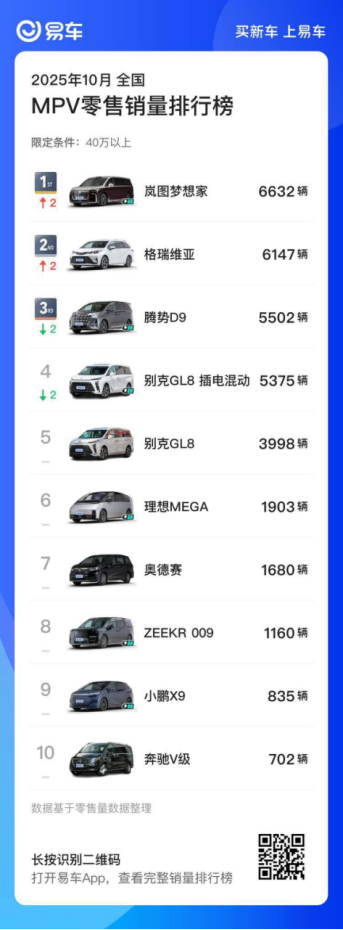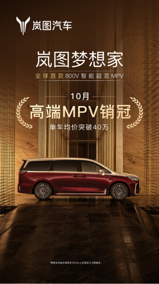 11月11日,2025年10月高端MPV销量数据出炉,岚图梦想家以6632台的成绩登顶第一,再次实力斩获高端MPV市场月销冠军,单车均价已超过40万元。自2022年上市至今,岚图梦想家已累计交付超15万辆,成为高端MPV市场的新晋顶流。
