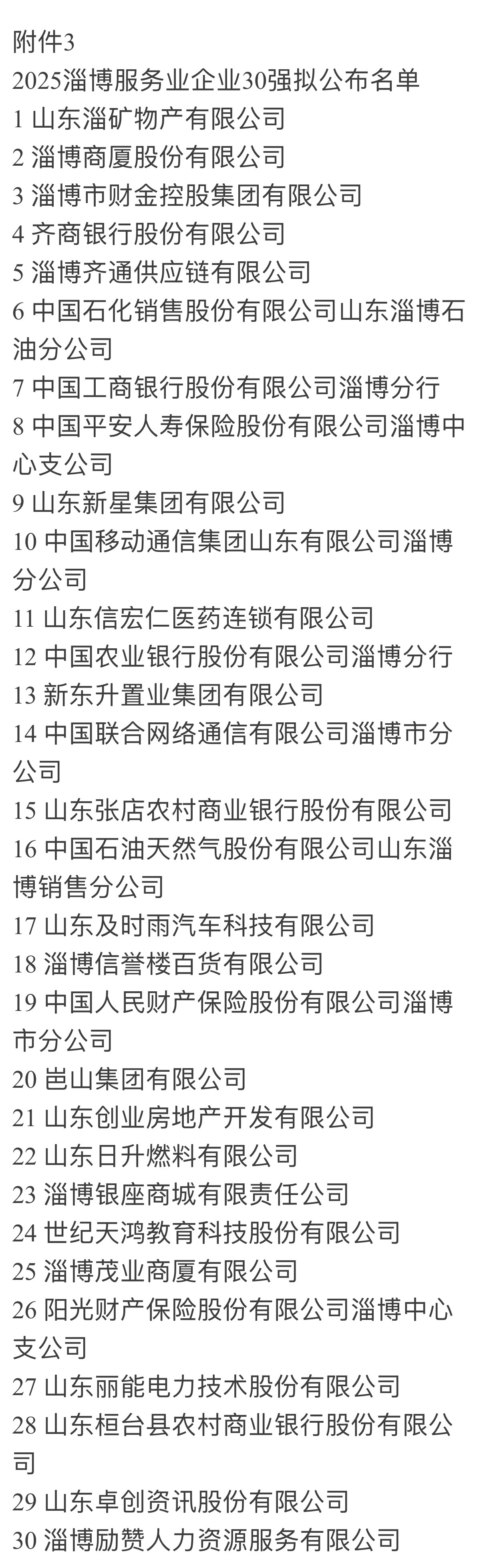 11月10日,淄博市工信局官网发布《2025淄博企业100强、制造业企业100强、服务业企业30强拟公布名单公示》。