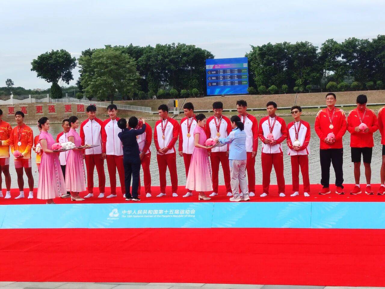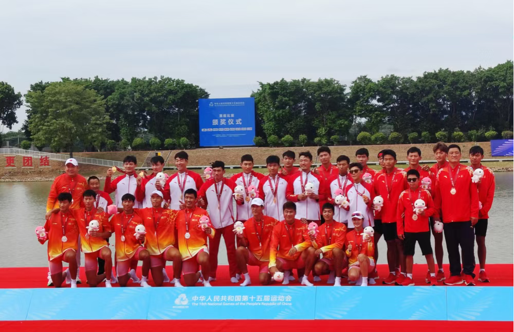11月11日,第十五届全运会赛艇比赛继续在广东国际划船中心举行,在男子八人单桨有舵手项目的决赛比拼中,潍坊市体育运动学校培养输送的运动员邵志强,与尹军杰、宗照山等队友组成的山东队,凭借强劲的划桨爆发力与默契的团队配合,成功斩获该项目冠军,为潍坊市摘得本届全运会首枚金牌。