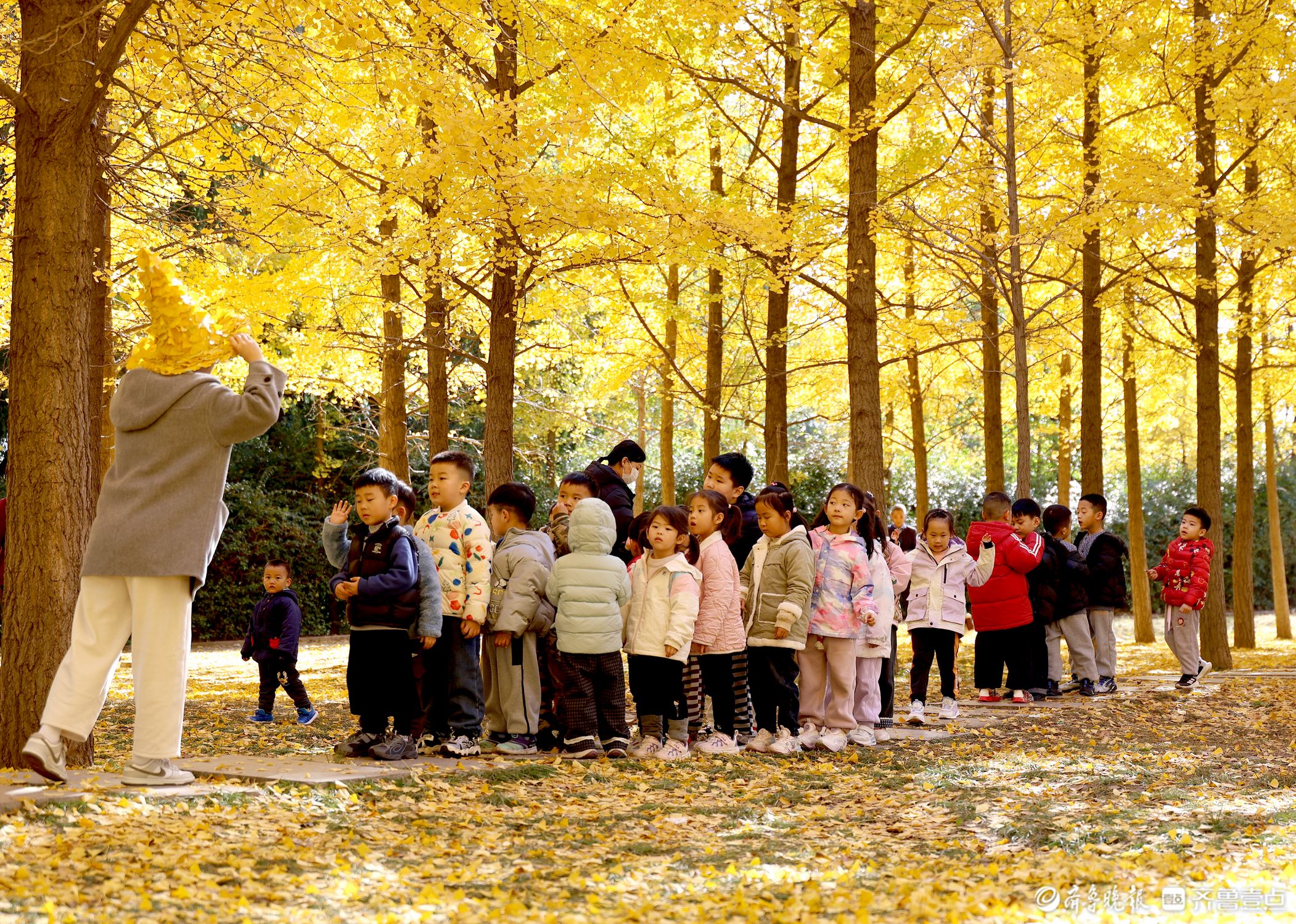 时序初冬,万物藏序,11月10日的临沂市蒙阴县汶河公园,正以银杏为笔,晴空为卷,铺展一幅恢弘壮丽的鎏金画卷。昔日葱茏的银杏林褪去绿意,满枝尽覆纯粹金黄,叶片在天光映照下熠熠生辉,成就最动人的初冬盛景。 这里兼具壮阔与雅致:抬眼是“一树金黄映晴空”的磅礴气象,俯身见“片叶含秋意”的精巧韵致。林间生机盎然,孩童追光嬉戏,笑声清脆,游人驻足流连,定格美景,人与自然相映成趣,勾勒出和谐共生的温馨图景。 公茂栋 摄