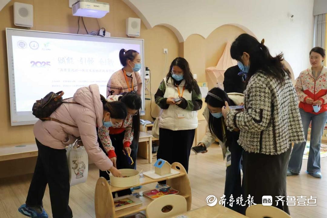会议开始前,与会代表首先参观了济南市历下区百合幼教集团百秀园,实地观摩了其托幼一体化的实践环境、设施配置以及日常保教活动的开展情况,近距离感受了婴幼儿回应性照护环境创设成果。园所贴合幼儿身心发展的空间布局、兼顾安全与探索的材料投放,以及“功能分区标准化、设施配置精细化、安全保障全面化”的实践举措,为托幼一体化实践提供了可借鉴的样本,引发了与会人员纷纷驻足交流。