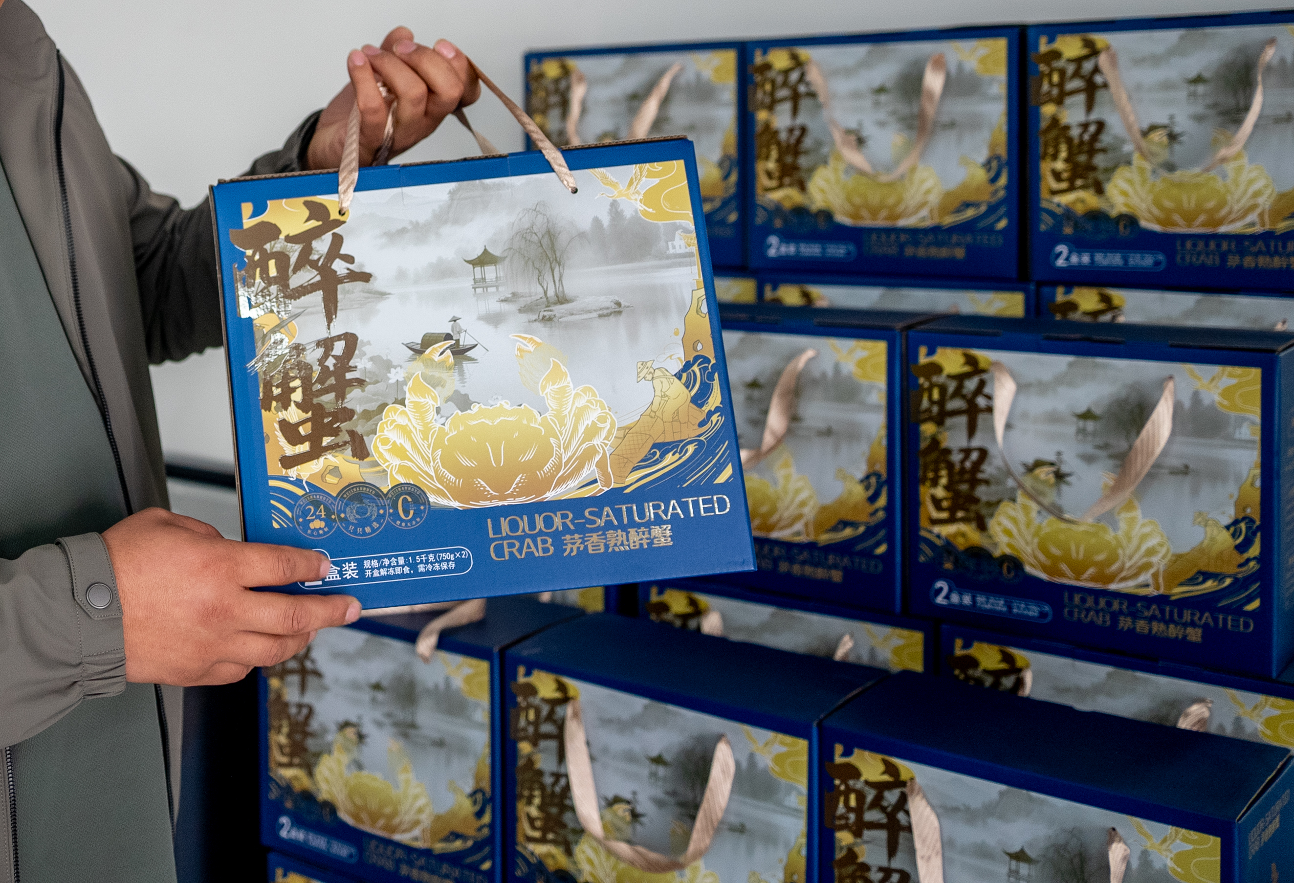 “茅香醉蟹”上市后迅速走红,订单同比增长三成,不仅畅销国内,还销往东南亚。在2025年上海国际蟹博会上,该产品获“创新银奖”。“以前一斤鲜蟹卖五六十,做成醉蟹能卖两三百,附加值翻了几倍。”历广营说,醉蟹项目还带动了周边蟹农,“只要达标,我们高价收,大家一起赚。”