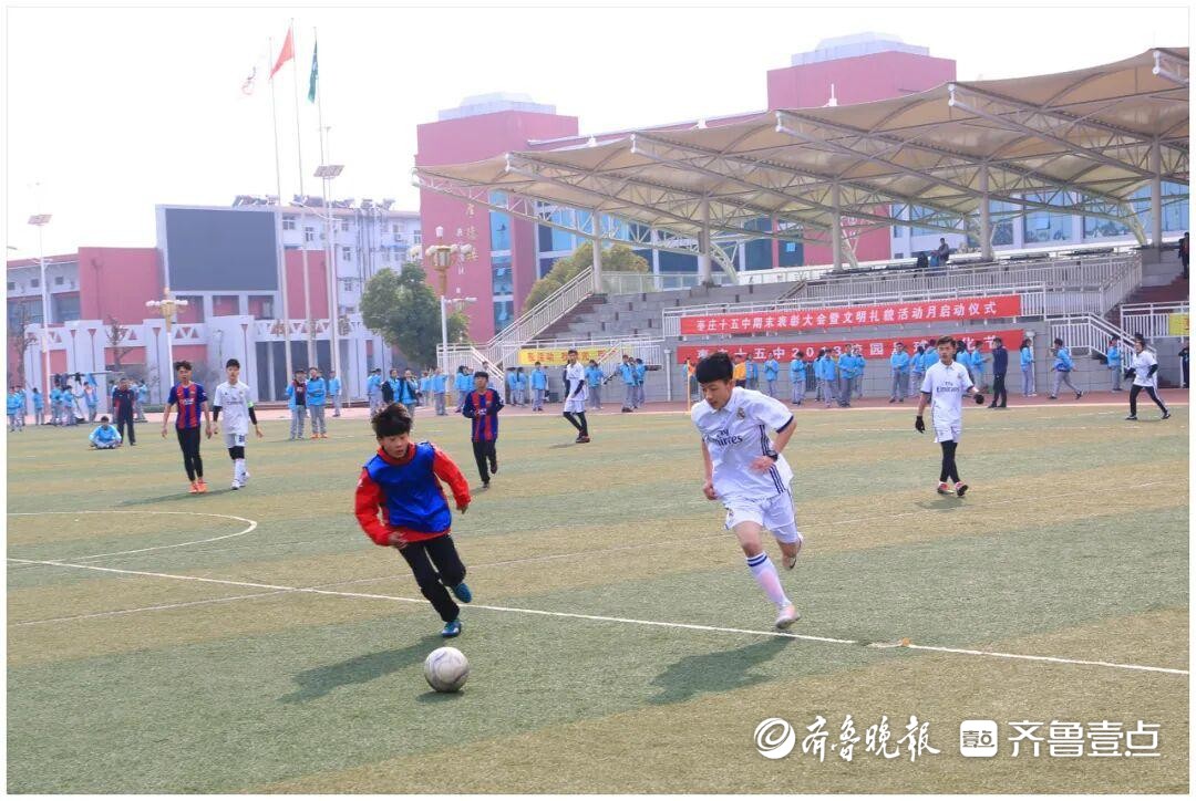 近年来,学校足球社团连续四年获得“四连冠”,篮球社团连续三年蝉联冠军,荣获2023 年、2024 年度全民健身先进单位、全市中学生田径运动会优秀组织奖等,多次代表市教育局参加市级篮球、乒乓球比赛,成绩优异。群众体育活动的蓬勃开展,有效增强了枣庄十五中师生的凝聚力、向心力,赢得了师生、家长的高度赞誉和社会各界的广泛认可。
