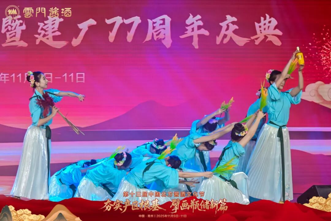 歌舞表演环节,依据青州酒文化精心编排的独创舞蹈惊艳上演。舞者们以灵动身姿,将七千年青州酿酒文明从《齐民要术》的古老智慧到云门酱酒“160操作法”的匠心传承,演绎得淋漓尽致。这场跨越时空的艺术对话,让与会嘉宾在美的享受中,对青州美酒文化的源远流长有了更为深刻的理解。
