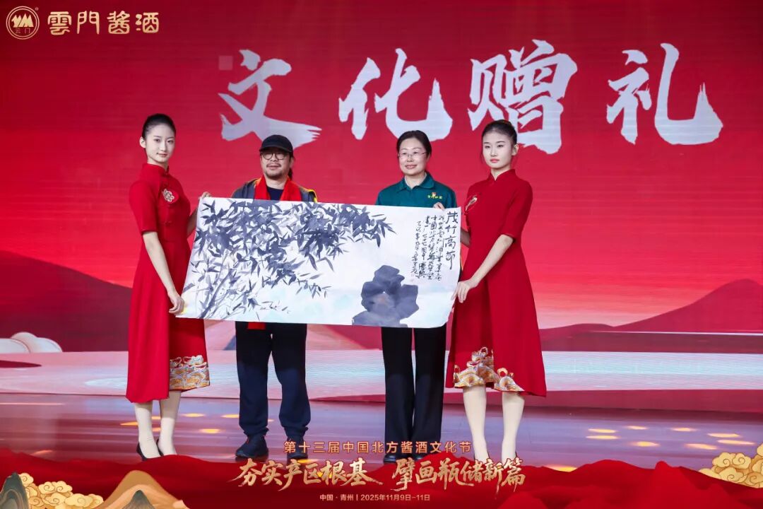为祝贺“第十三届中国北方酱酒文化节”成功召开,中国艺术研究院艺术创作指导委员会委员、中国画院副院长、中国美协理事桑火尧,中国艺术研究院研究员、青州市美协主席王孔华分别向云门酒业赠送书画作品,寄语深情祝福。