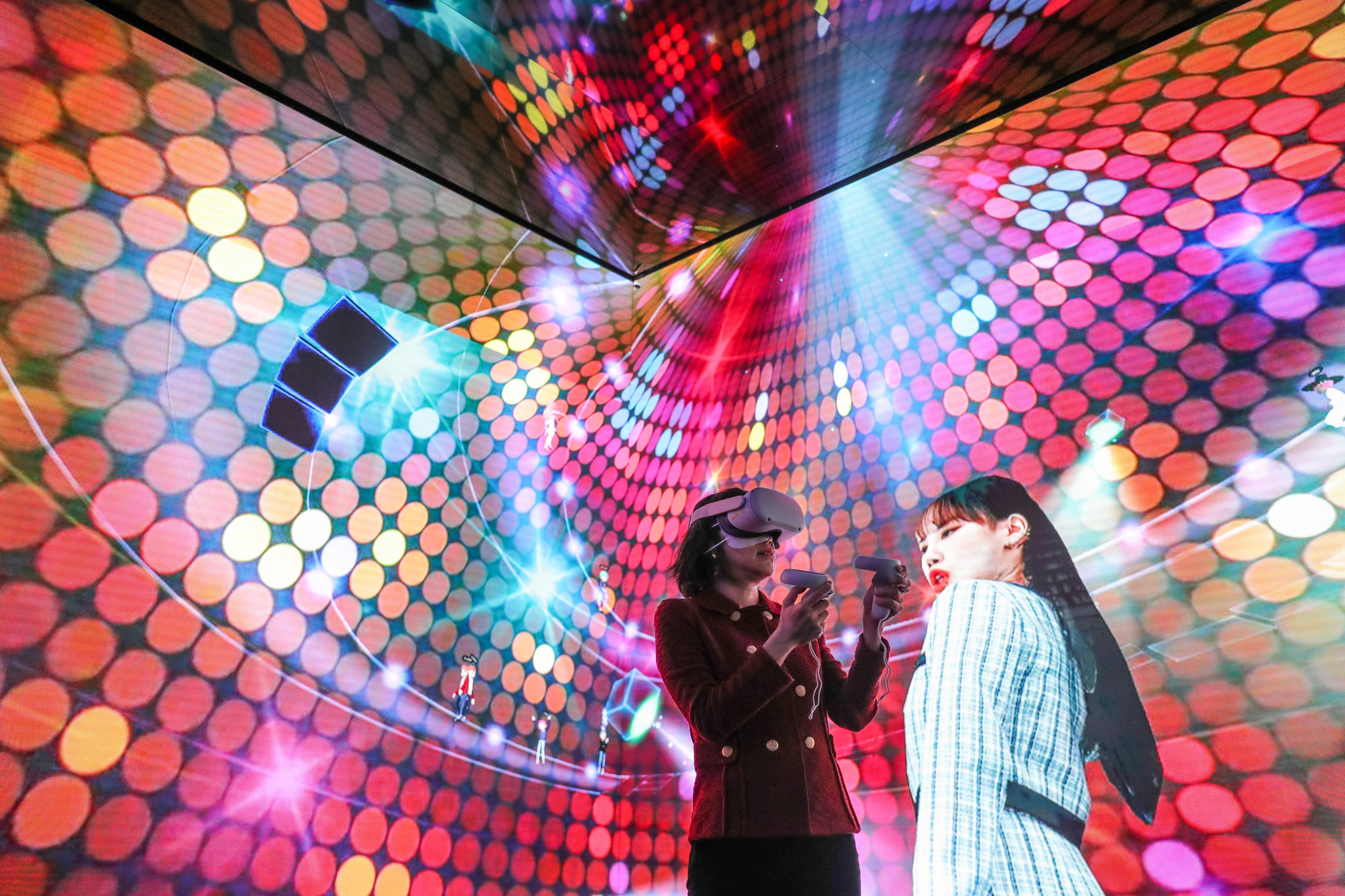 2022年3月1日,一名女子在西班牙巴塞罗那2022世界移动通信大会上通过虚拟现实技术在“元宇宙”中体验音乐会。新华社记者郑焕松摄