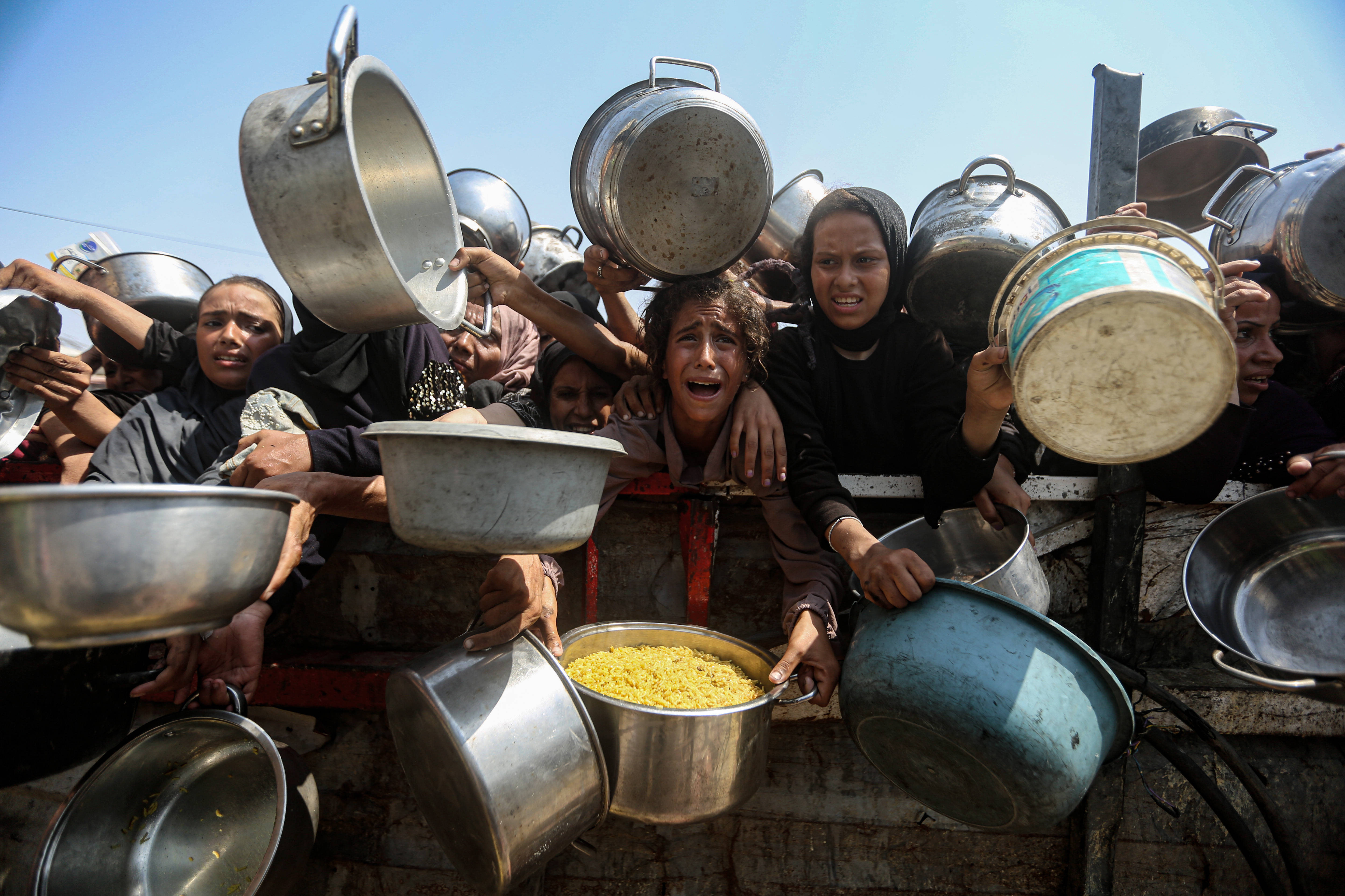 8月10日,民众在加沙城领取免费食物。新华社发(里泽克·阿卜杜勒贾瓦德摄)