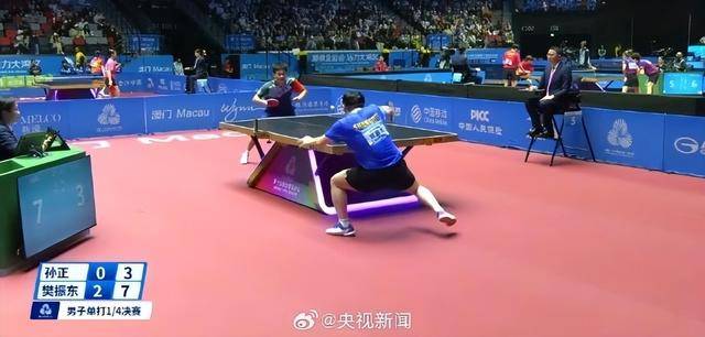 11月13日消息,第十五届全运会乒乓球男单1/4决赛,樊振东战胜孙正,晋级4强。 (来源:央视新闻)