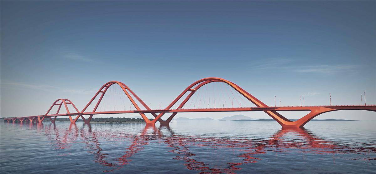 究其原因,梁子湖是武昌鱼的国家级种质资源保护区,水质敏感,生态要求极高。为减少对水体和水生生物的影响,大桥设计为中承式多连拱桥,尽量减少桥墩数量,降低对水流的阻碍和水质的影响。