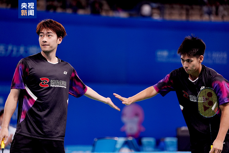 △羽毛球男团1/4决赛,王昶(左)、谢浩南。