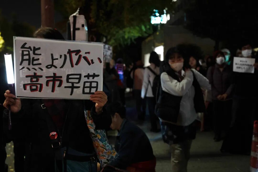 抗议者大木晴子告诉记者,她在电视上看到高市在国会的发言时“非常震惊”,高市的表述“极其不合适,带有危险的政治倾向,我们不希望这样的人当首相”。大木还说,作为首相竟在这种敏感议题上发表不当言论,其政治倾向让普通民众感到担忧。