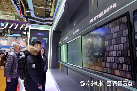 “看看您像哪个齐鲁名人?”现场,文趣·数字创意互动平台前成为了打卡体验的热点。体验者扫描人脸之后,就能测试到自己的长相与哪个齐鲁名人相似。“与您神似的齐鲁历史名人是:孙子。相似度为53.2%。孙武是春秋时代著名军事家,后人尊称其为孙子、兵圣。”现场一位体验者兴致勃勃地体验完后,拿起手机拍了合照。据了解,文趣·数字创意互动平台依托山东文化数据库和齐鲁文化大模型,利用可视化交互技术,开发了数字星谱、朋友圈、AB 路径、照片墙、时空地图、AI 随手画等一系列创意类互动产品,给游客带来可触摸、可感知、可交互的沉浸式观展体验。