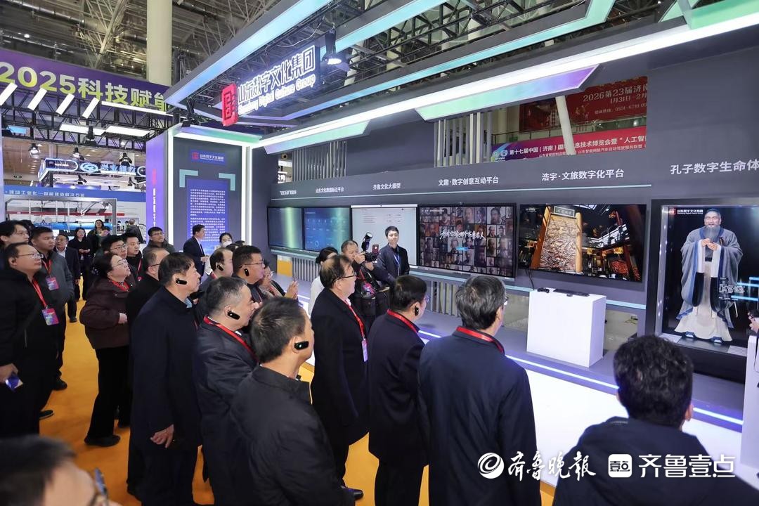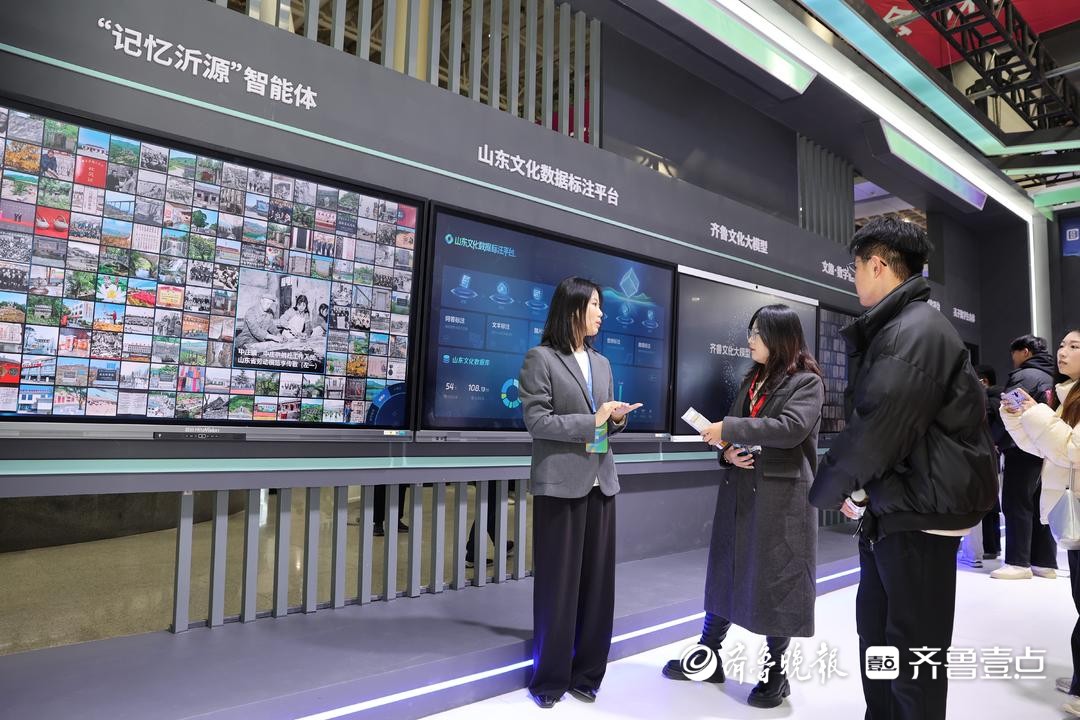 信博会现场,山东数字文化集团自主研发的齐鲁文化大模型、孔子数智大模型、山东文化数据标注平台、“记忆沂源”智能体、“文趣”数字创意互动平台、“浩宇”文旅数字化平台等六款产品精彩亮相——