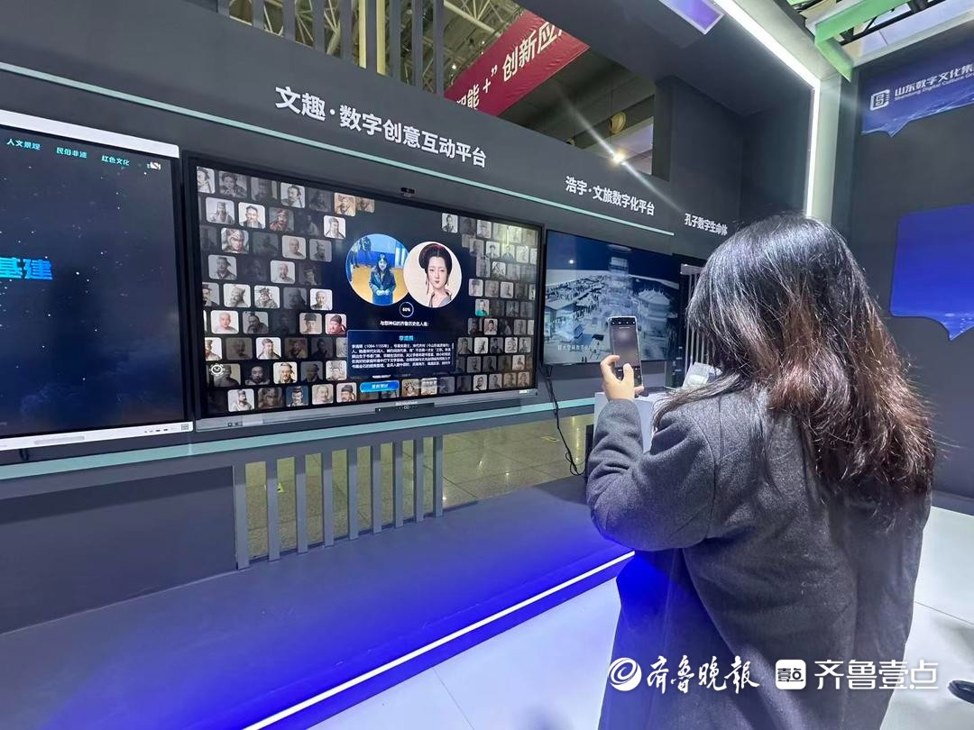 第十七届信博会山东数字文化集团展区前,从事信息技术行业的曹女士对齐鲁文化大模型很感兴趣,对她来说,数据、资料的检索一直是“大工程”,“齐鲁文化大模型能够瞬间检索出我想了解的名人相关资料,‘即问即答’,高效、便捷。”