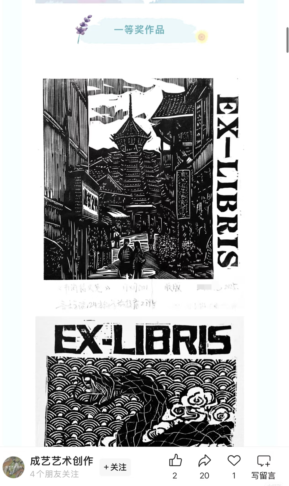 微信公众号“成艺艺术创作”曾发文介绍了此次作品展,该展览系由成艺大学艺术创作委员会、校图书馆、校园委联合主办的《世界读书日版画藏书票作品展》,展出了近200幅作品并评出了一、二、三等奖和创作奖。