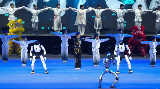 为让文化赋能更具象、更鲜活,晚会深挖山东文化IP,以科技为桥梁实现传统艺术的现代表达,让非遗技艺在创新中传承。作为国家级非物质文化遗产,山东琴书以琴为骨、乡音为魂,承载着齐鲁儿女的深厚情感与集体记忆。《老师傅“遇”AI》节目中,老艺人同台献艺,指尖捻弦、乡音悠扬,身旁的AI机器人则以精准算法接腔对唱,为非遗传承注入新潮活力;情景武术《传承·共生》里,人形机器人与武校学生相向而立,抱拳行礼、切磋招式,将水泊梁山武术的刚劲豪迈与机器人的精准利落完美融合,在刚柔并济间彰显齐鲁文化中的“忠义”内核。