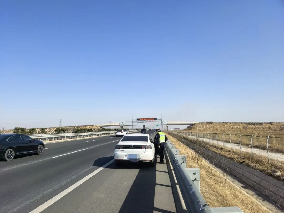2月20日下午,高速二大队执勤民警在滨德高速巡逻时,发现一辆银灰色小型客车停在应急车道上,现场车流量大,情况十分紧急。