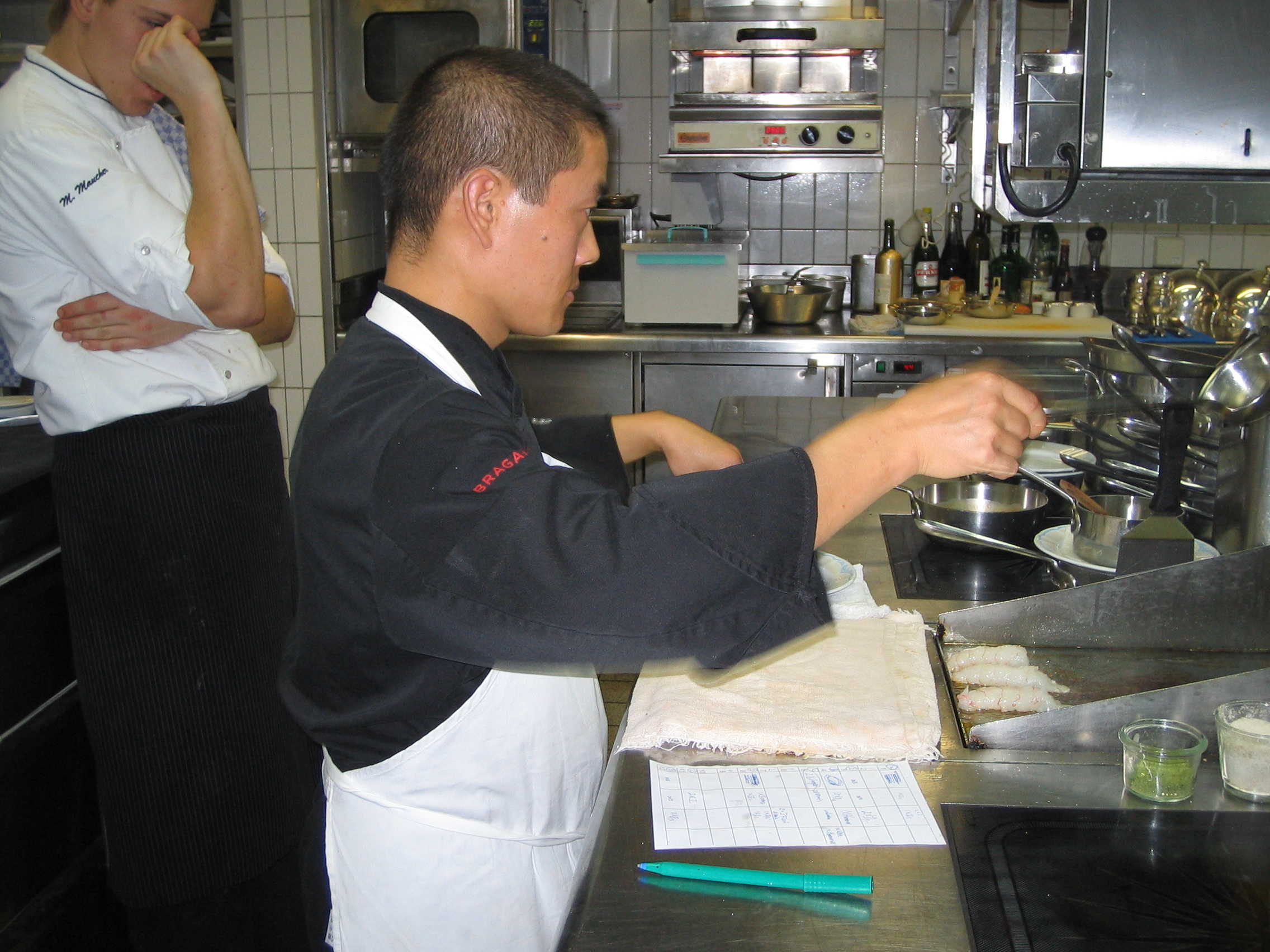 2005年初,喜子做了一个大胆的决定——辞去月薪1000多欧元的中餐厅工作,转身前往西餐厅寻找工作机会。“我不想一直困在改良中餐的舒适区,我想看看,真正的西餐,到底是什么模样;我想学到更专业、更精湛的技艺,打破自己的局限,遇见更好的自己。”经一位德语老师的介绍,他找到了一家米其林一星法餐厅。