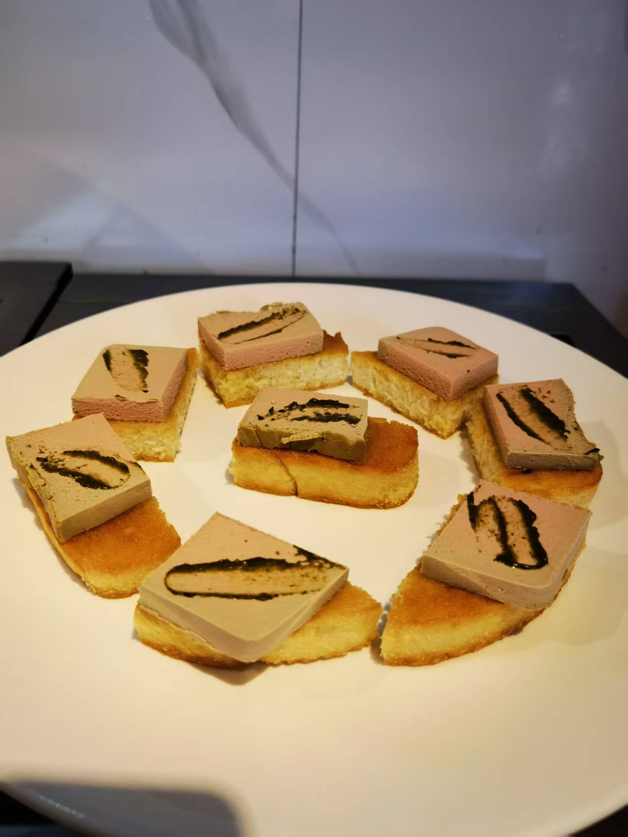 一开始,他试着把馒头烤着吃,烤好的馒头口感太过干涩,与鸭肝酱的绵密细腻格格不入;后来,他又尝试用植物油煎馒头,可馒头吸油过多,口感油腻厚重,让人难以下咽。一次次尝试,一次次失败,可他没有丝毫气馁,反复试验了无数次,调整火候、改进方法,终于找到了最佳制作方式——用黄油煎馒头。煎好的馒头外酥里嫩、金黄诱人,不油腻、不干涩,搭配绵密细腻的鸭肝酱,口感层次丰富、相得益彰,一口下去,既有鸭肝的醇厚,又有馒头的劲道,还有淡淡的黄油香气,让人回味无穷。