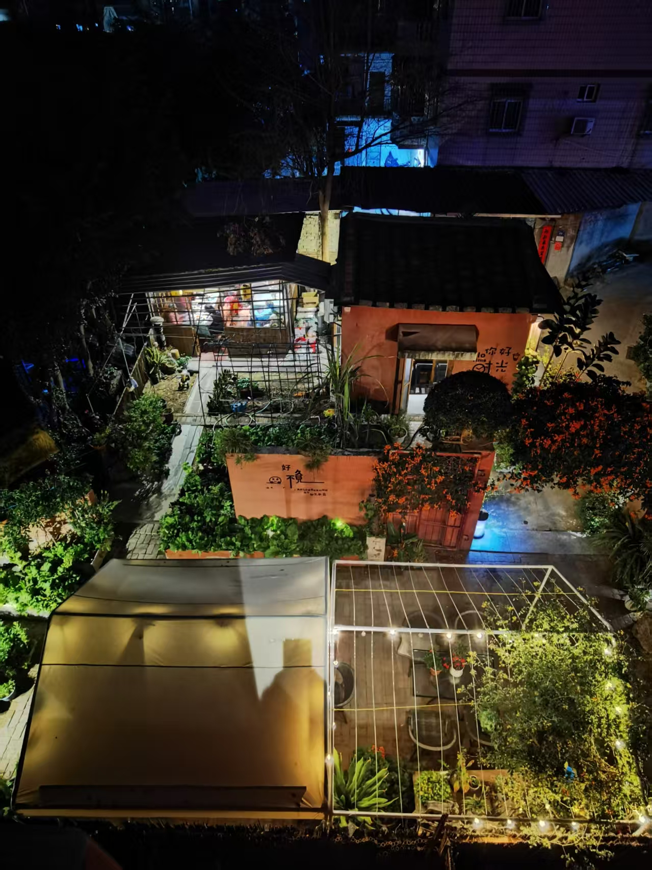 原来,早在华侨大学开店时,他就认识了港头公益图书馆的创始人,对方一直邀请他来这里开田园餐厅:“这里安静,有院子,适合你。”有一次,喜子受创始人之邀,在港头社区的院落里,为一场婚礼制作西餐。月光皎洁,洒在院落的每一个角落,晚风温柔拂面,带着院子里花草的清香,沁人心脾。那一刻,他的内心无比宁静,所有的浮躁与焦虑都烟消云散,心底默默下定决心:“就是这里了。”